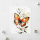 En sjudande orange och svart fjäril visas med delikat vingar som sprids över hela området och omges av abstrakt löv och stänk av vattenfärg. Mjuk grönt och gräddtoner i löven ger en god bakgrund till denna dynamiska sammansättning.