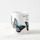 Katerpelare, kokonger och fjäril. Övergångens skönhet och . Butterfly citerar kaffe mugg - inspirerande och uppmuntrande.
