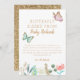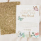 Elegant och vismisk fjäril och babydusch i blommigten tack vare ditt mallkort med en vattenfärgad illustration av rosa och blå fjärilar med faux guld glitter och blomma- och bladträdgård vid grund. Standardmeddelandet tackar gästerna för att de närvarade vid duschen och för deras gåva.
