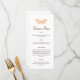 En känslig fjäril för orange accentuerar den här bröllop-menyn. Den ingår i Butterfly Kisses bröllop-samlingen. Det samordnar sig också lätt med Lila Butterfly Kisses bröllop-samlingen.