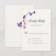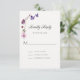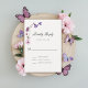 En förtjusande vattenfärgsillustration med ett fjäriltema, som innehåller lila fjärilar och lila och rosa vilda blommor i ett sött, vidsträckt stil. Eleganten, lekfull kalligrafi, sätter extra på titeln och dekorerar denna flicka-dusch-OSA kort som är perfekt för ett vår eller sommar-firande.