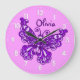Flickor-fjäril kallade väggklocka för en perfekt gåva. Tyst klocka ser underbar ut i ett barn sovrum. Anpassa med din egen namn. För närvarande läser Olivia. Designad av Sarah Trett.