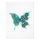 Artistiskt ritad, fiktiv, grönt, utförlig fjäril med grönt, vackra, fredsfjädrar med vit bakgrund.