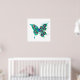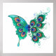 Artistiskt ritad, fiktiv, grönt, utförlig fjäril med grönt, vackra, fredsfjädrar med vit bakgrund.