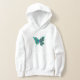 Artistiskt ritad, fiktiv, grönt, utförlig fjäril med grönt, vackra, fredsfjädrar med vit bakgrund.