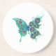 Artistiskt ritad, fiktiv, grönt, utförlig fjäril med grönt, vackra, fredsfjädrar med vit bakgrund.