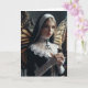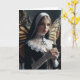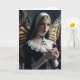 En nunna med fjäril vingar på ryggen håller ett ljus blankt inuti tillfällen som hälsar på kortet