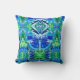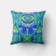 Pillow i en digital batik mönster av stora fjärilar på en ornaterad, arabesque medallionbakgrund, i skuggor av koboltblått, turkos och jade grönt
