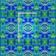 Fabric in a digital batik mönster of stor butterflies on an ornate, arabesque medallion bakgrund, in shades of cobalt blue, turquise and jade grönt