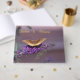 Den här gästen bok har en fjärilsäck som samlar nektar från en lila butterfly bush-blommar. Texten kan anpassas efter dina behov. Den gästen bok kan användas till bröllop, årsdagar och förlovningsfester.