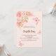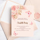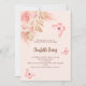 För en modern boho stil Möhippa. En persikobakgrund. Dekorerad med ro guld och rosa blommigt, rosor, pampasgräs och fjärilar. Anpassa och lägg till information om namn och party. Bakåt: Persika färgadens bakgrund och fjäril.