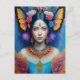 En bild av en fjärilprinsessa med lilla krona. Det här är en AI-genererad teckning med ett tema för blommigt.