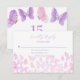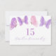 Svarskort för rosa och lila fjärilar. All text är redigerbar. Quinceañera-tema.
