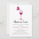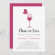 Eleganten Inbjudningskort för möhippan har fjäril sitta på fälgen på vin glas, "Cheers to Kärlek" i manustypografi. Anpassa din möhippa med hjälp av fälten för mallen. Kortets baksida är djup rosa med vit fjäril i mitten. Anpassa initialer under fjärilen. Ett underbart val för möhippor i vineriinställningar.