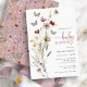 Designat för att ge ett varaktigt intryck illustrerar den här inbjudan till babyduschen elegant fjärilar som dansar bland vintagens vilda blommor i varma nyanser av brunt, rost, rost, terracotta, bränd orange och sage grönt. Det sofistikerade rosa-skript som lyder "Baby Shower" tillför en mjuk, feminin beröring som perfekt kompletterar det organiska, rustiska estetiska estetiket. Baksidan av inbjudan visar ett samordnat mönster på en rosa, som erbjuder ett vackert layouterat utseende som gör att designen kan kopplas ihop utan problem. Perfekt till dem som vill ha en sammanhållande snyggt firande, denna inbjudan skapar ett magiskt första intryck. Fira i stil med en utformning som är lika graciös som själva tillfälle!