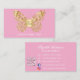 En feminin rosa-bakgrund som dekoreras med faux guld-fjäril. Anpassa och lägg till logotyp och text på framsidan. Tillbaka: Mallar för Ditt namn, din titel, mobilt nummer, e-post och webbplats adress, QR-kod. Perfekt för kvinnliga företagare, konsulter, företagsägare.