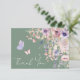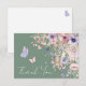 This flat thank you card is designed to match the sweet and whimsical “A Little Butterfly Is On The Way” theme. The front features a soft sage green background with white font for a fresh and elegant look. Watercolor wildflowers and greenery accent the design, with pink and purple butterflies fluttering around the words “Thank You” in an elegant handwritten script calligraphy. The gentle color palette of blush pinks, dusty rose, lilac, lavender, violet, and fresh greens pairs beautifully with the sage backdrop.