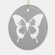 Butterfly sketch, silver grått och vit julgransprydnad keramik