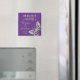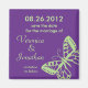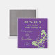 Modern och elegant magnet. Har en fjäril i kombination med grönt och lila färg. Fångstdesign för trendig och öga. Underbar för sommar, vår, trädgård eller utomhus bröllop. Lägg till en egen Spara datumtexten. Den här designen finns i andra färg.