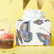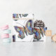 Blå, brun, gult, lila vattenfärg teckning av underbara fjärilar som ger coola vår och sommarhumör, anpassningsbarnas bakgrund färg.