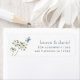 Butterfly Wildbloms Namn Returadress Bröllop. En minimalistisk contemporary med en vildblomma och blå fjärilmotiv. Anpassa enkelt till namn och returadress. Ändra text och bakgrund färg om du vill matcha ditt eget bröllop färg-tema med Redigera ytterligare.