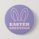 Lägg till ett litet stycke Påsk med knapparna **Påsk Hälsning Bunny Öron**! Med mjuk rosa öron ovanför ord **"Påsk Hälsning"** i matchande rosa är denna festknapp ett roligt för att fira helgdag. Fäst den i jacka, påse eller Påsk för en extra-dos av säsong-sprit. Perfekt för Påsk party, äggjakt eller som en liten gåva!