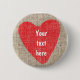 Valentineser för rött Hjärtat Rustic Landsbyggsbröllop KNAPP. Anpassa med valfri text.