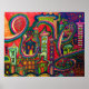 Som en gata mellan små orientaliska byar omger en regnbåge färglösa små hus - bild är målat i gröntens och röda nyanser. Bild är målat med trämarkörer av Carina Rainbow, Berlin 2011.