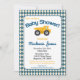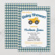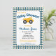 Den här roligtens blåa och gult-inbjudan till babydusch innehåller en gult lastbil med en bakgrund som är utmärkt med argument. En munter barnduschinbjudan till den lilla man som är under uppbyggnad.