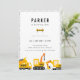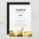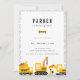 Tema för kute-bygget i lastbilar, födelsedagsfest inbjudan.