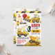 Ett byggtema födelsedagsfest inbjudan med en vit bakgrund med söt vattenfärgskonstruktion fordon, smuts, vägar och stoppskylt. Det här är en modern inbjudan till barns födelsedag som är enkel att anpassa.