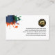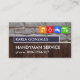 Täcket har en tegelvägg med en träpanel lagrar. Över överst finns en färgstark logotyp för verktyg-ikonen handyman som du kan använda med. Detta följs av er prestigefyllda namn, företaget namn och kontaktuppgifterna. På baksidan, i ett vitt hölje med färgstänk, finns detaljer på kortets höger. Längst upp finns en logotyp för hemlandskap i guld som du kan följa med användan följt av ditt prestigefyllda namn, kontaktinformationen och ett sloganbildningsalternativ. Ett underbart kort för byggnad av entreprenörer, handyman osv. till använda.