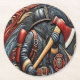 I en levande snö av färg gör en modig brandman sitt redskap, yxan i handen, symboliserar mod och motståndskraft. Den invecklade konstruktionen visar hur viktig tjänsten är och förkroppsligar känslan av att hantera faran med orubblig styrka och skicklighet.