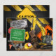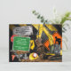 Denna unika inbjudan har en realistisk grävmaskin som leker i leran omgiven av hantverkarverktyg. Personalisera med din festinformation på en gatskylt.