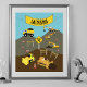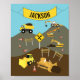 Söt illustration av en byggarbetsplats och lastbilar tema. Byggarbetsfordon transportfordon inkluderar dumper, grävmaskin, backlastare, bulldozer, kran och frontlastare. Den perfekta designen för lastbil, tung maskin entusiaster pojkar och flickor. Idealisk julpresent, födelsedagspresent, för barnkammardekor, konst för barnrum, heminredning eller tillbaka till skolan. Anpassa namnet och gör det till ditt eget.