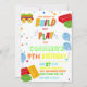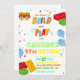 Byggblocksinbjudan, Byggblocksfest, Byggklossinbjudan, Byggblocksfödelsedagsinbjudan, Byggblocksfödelsedagsinbjudan, Pojkfödelsedagsinbjudan, Pojkfödelsedagsinbjudan, Modern barninbjudan, Estetisk inbjudan, Färgglad inbjudan