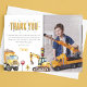 Säg tack till dina gäster på ett speciellt sätt med ett tackkort som har med ett favorit födelsedagsfoto av dig! Tryckt med glada vattenfärgade bilder av en grävmaskin, dumper, trafikljus och vägmärken, kommer detta kort säkert att ge dem ett leende på läpparna och få dem att känna sig uppskattade. Till vänster på kortet står det: "Jag tyckte om kakan och presenterna också, men min favoritdel var att träffa dig! Tack för att du kom till min fest och för den underbara presenten. Massor av kärlek, [Deras Namn]". Låt dina gäster veta precis hur mycket du uppskattar deras närvaro och presenter med detta speciella kort!