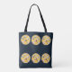 Mörk blått Tote-väska med gult Cirkel mönster för alla stads-älskare och resenärer i stil. Du kan byta ut texten "Du ser inte världen om du bara tittar igenom ditt eget fönster" mot ditt eget. Om du vill ha fler ändringar (teckensnitt stil, färg, textposition) klickar du på Redigera design.