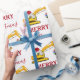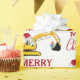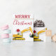 En söt illustration av en grävmaskin i gult leksak som bar en julhatt och dekorerade i julklapp ljus som grävde upp några julklappar med ord "God jul". Perfekt för byggandet av lastbil älskare i alla åldrar. En idealisk julomslutning papper för schavator lastbil-entusiaster stor eller liten, flickor eller pojkar.