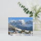 Postkort för byn St. Magdalena (Santa Maddalena) med kyrkan i Villnoesstal i Sydtyrolen, Italien, i snö under vintern.