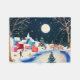 Vintern har anlänt och täckt en by med snö. Barn gläds över att folk njuter av sin vinternatt mot en ljus fullt måne.