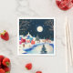 Vintern har anlänt och täckt en by med snö. Barn gläds över att folk njuter av sin vinternatt mot en ljus fullt måne.