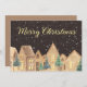 Skicka varmt helgdag önskemål med det här charmerande God jul-kortet med en mysigt vinterplats. Den här festliga designen visar vattenfärgshus i himmel med guldfärgat ljus och snö-täckt träd i jordnära neutralter. Skriptet elegant guld tillför en klassisk beröring, perfekt för att dela ditt hjärtliga budskap från hemmet till hemmet. På baksidan finns utrymme för att lägga till ditt eget hälsning eller din egen använda i det förskrivna meddelandet för en snabb och meningsfull avsluta.