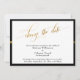 I denna unika design användes en elegant kalligrafisk typsnitt för att skapa en grafik som lyder "ändra datum". Bilden har försetts med en falsk metallisk guld effekt. Matchande gyllene ränder som skapar ett slags band har lagts till för ett diskret, sofistikerat resultat. Använd mallfälten för att lägga till dina personliga uppgifter. Bakgrunden och brödtexten kan ändras till valfri färg du föredrar. Vänligen kontakta oss med eventuella specialförfrågningar eller för anpassningshjälp. // 141 //