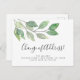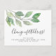 Detta vykort för flytta av snyggt dekoreras med minimalistisk vattenfärgsblad i gröntens nyans. Enkelt anpassade. Ursprunglig vattenfärg © Michele Davies.