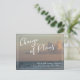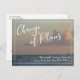 Den här designen har ett foto från en söt strand. Du kan byta ut det mot ett eget, om du så vill. På framsidan finns ett grafikhuvud som jag designat med hjälp av en handskrift av avslappnaden, som lyder "Ändring av ritningar". Nedre, det finns ett glatt meddelande som du kan redigera och som förklarar dina nyheter: "Vi är fortfarande Gifta sig! Vi vet inte när." Den här texten visas i vitt i mitten av två smala gräns. På baksidan finns mallplatshållare för information. Använda dessa fält att lägga till era personuppgifter och ändra mitt förslag till formulering till kostym för era behov och er situation.