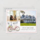 Vintagens röda cykel med ett nytt basket av blommor, ett nytt hemannonskort med vattenfärg. "Vi har flyttat", byte av adress-kort med två foton. Ladda upp två av dina favoritfoton till hemmet och anpassa texten med din ny adress.