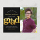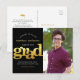 Se till att alla dina vänner och släktingar fortfarande kan fira din examenstås stora händelse, oavsett nuvarande globala oförutsedda omständigheter. Skicka ut detta fantastiska, enkla, moderna, personliga fotokort "Ändrade planer" för en händelse att minnas. Fet, grafisk, falsk guldfolie-typografi överlagrar en svart bakgrund. På höger sida lägger du till ett foto efter eget val. Anpassa den anpassade texten med din examenstås namn, examensår och datum. Ditt anpassade meddelande, en falsk guldfolie-examensmössa-ikon och din returadress pryder baksidan. Matchande inbjudningar, tackkort, mössprydnader, servetter, tallrikar och andra examenspresenter finns också tillgängliga i denna trendiga och stilfulla kollektion. Se till att deras speciella firande fortfarande blir lika festligt som ursprungligen planerat!