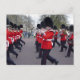 Blysektionen i Buckingham Palace vaknar för bytet av vakterna. Den traditionella svarta och röda uniformen, tillsammans med den höga pärlhuden som bärs av vakterna när de spelar sina mäklare. Onlook vaktar i bakgrunden.