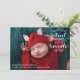 Denna minimalistiska semestern födselannons innehåller ett foto som sträcker sig över hela framsidan av kortet och ett foto som sträcker sig över hela baksidan av kortet. Typografin är modern med en touch av nyckfullhet!